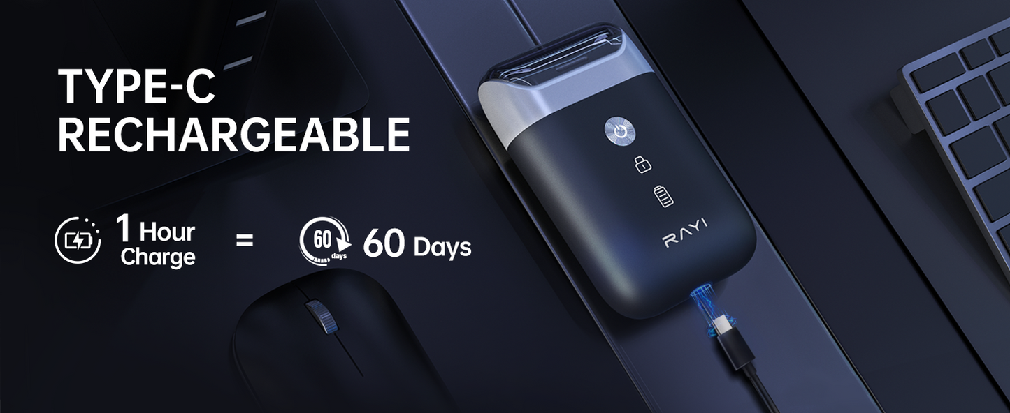 A 1-hour quick charge delivers up to 60 minutes of shaving time, giving you multiple shaves on a single charge. The built-in charging indicator keeps you informed of power status.